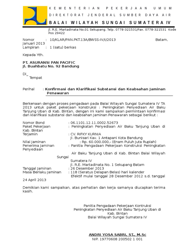 Contoh Surat Klarifikasi Jaminan Penawaran Pdf